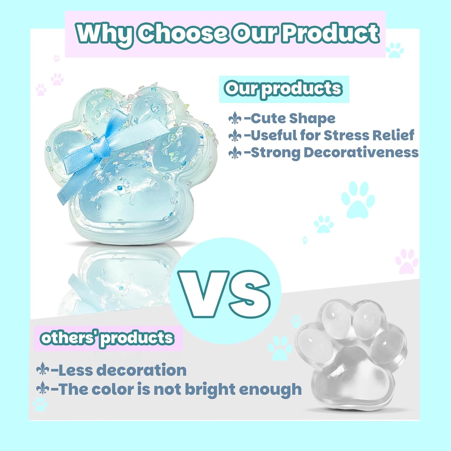 Sea Salt Cat Paw SquishyDiscover the calming delight of our Sea Salt Cat Paw Squishy, a perfectly crafted stress-relief toy designed for comfort and relaxation. With a refreshing white and blue color scheme reminiscent of ocean waves and fluffy clouds, this squishy toy not only looks cool but feels soothing to the touch.Expertly made from high-quality TPR materials, the Sea Salt Cat Paw is both soft and durable, ensuring a pleasurable squeezing and stretching experience. Its lightweight and compact design make it easy to carry, bringing you instant relief whenever needed. This squishy paw is not just a fun toy; it also serves a therapeutic purpose. It can be particularly beneficial for individuals seeking to alleviate specific symptoms, helping them maintain focus and reducing unwanted repetitive behaviors.Perfect as a thoughtful gift, the Sea Salt Cat Paw Squishy is an ideal choice for anyone in need of a refreshing stress-relief solution. Treat yourself or a loved one to the soft, satisfying sensation of our squishy paw and enjoy the benefits of a more relaxed mind.