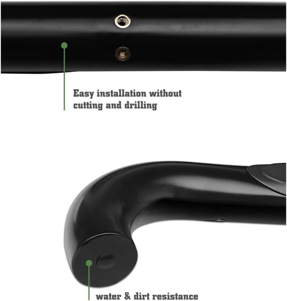 HXHREDRRDWhat is Running BoardRunning boards are particularly popular on trucks and SUVs,where the height of the vehicle can make it difficult for passengers to climb in and out.By providing a secure step that is close to the ground,running boards can help make the process of getting in and out of the vehicle safer and more convenient.In addition to providing a practical function,running boards can also add to the overall appearance of a vehicle.Many running boards are designed to match the styling of the vehicle and can be customized with logos or other decorative elements.Overall,running boards are a popular accessory for anyone who wants to make it easier and safer for passengers to enter and exit a vehicle,while also adding a touch of style and customization to their vehicle.FitmentPlease check top Automotive Fitment Filter and Description to see if this item will work on your vehicle before purchase!Item_OfferedPackage Included:(2) Mounting Brackets(3) Mounting Hardware(4) Installation InstructionNumber of Pieces:2PositionLocation:Left,RightPart_NumberB2-12A-M800Production DescriptionFits Perfectly -Surface Finish -Outstanding Design -Easy to Install -Easy Bolt-on InstallationNo Drilling or Cutting RequiredAll Mounting Hardware and Installation Instruction IncludedColorBlackFinishBlack Powder-CoatedMounting Hardware IncludedYesShapeRound