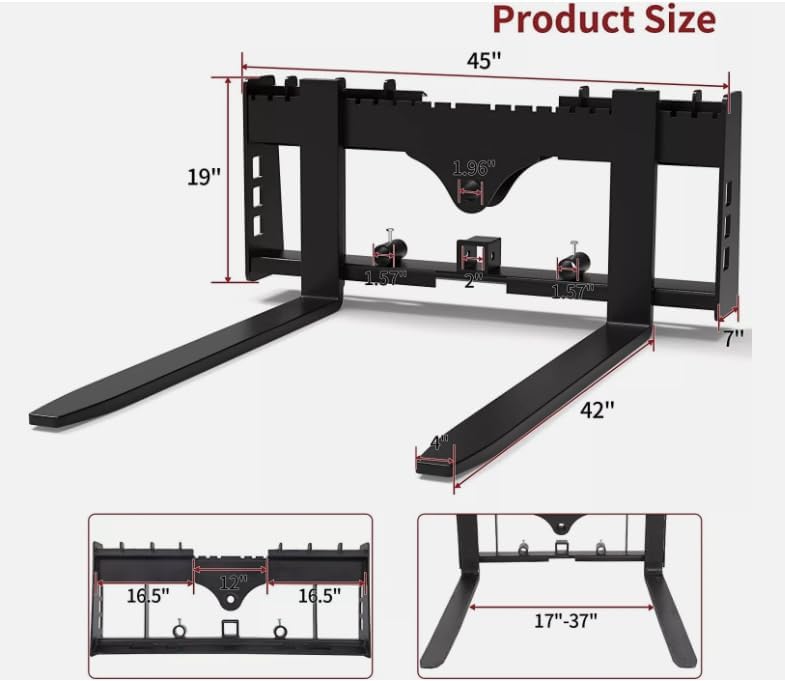 | Included Components | 1 x skid steer pallet fork frame 2 x pallet fork blade |
