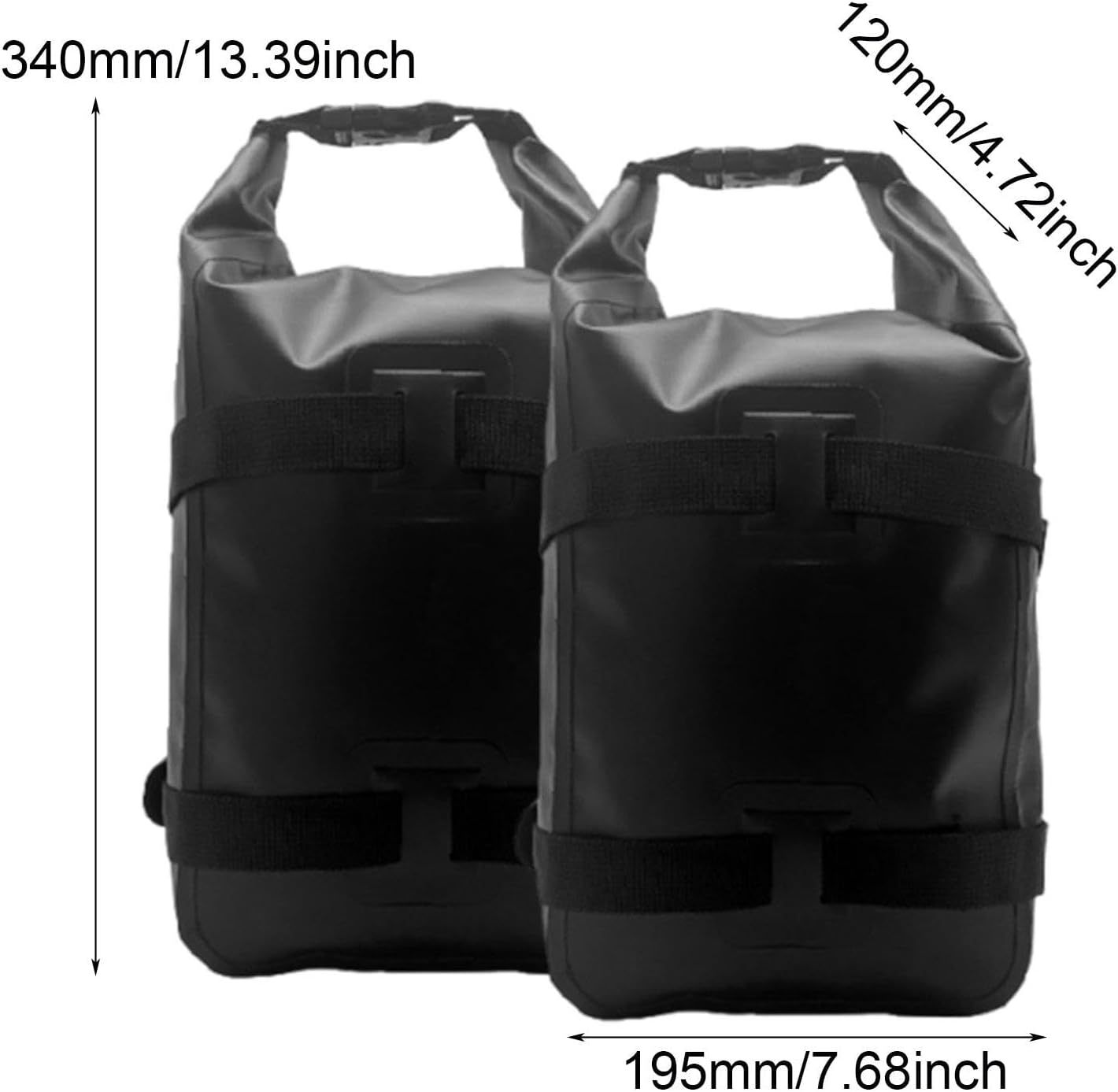 Product Overview:This versatile bike front fork bag provides reliable storage solution for cycling enthusiasts. Designed with waterproof properties and durable construction, it offers practical functionality for various riding conditions.Key Features:- Waterproof material construction with scratch and abrasion resistant properties- Generous storage capacity without compromising structural strength- Adjustable strap system with removable buckles for customized fitting- Seamless design enhancing waterproof performance and tear resistance- Suitable for diverse cycling environments including mountain and urban roadsSpecification:- Material: WaterproofSize Chart:12L: 19.5cm x 12cm x 34cm / 7.68inch x 4.72inch x 13.39inch7L: 19.5cm x 9cm x 33cm / 7.68inch x 3.54inch x 12.99inchPackage Includes:Optional:1 Piece 12L Bike Front Fork BagOR1 Piece 7L Bike Front Fork BagNote:Please allow slight measurement variations due to manual measurement and monitor differences.