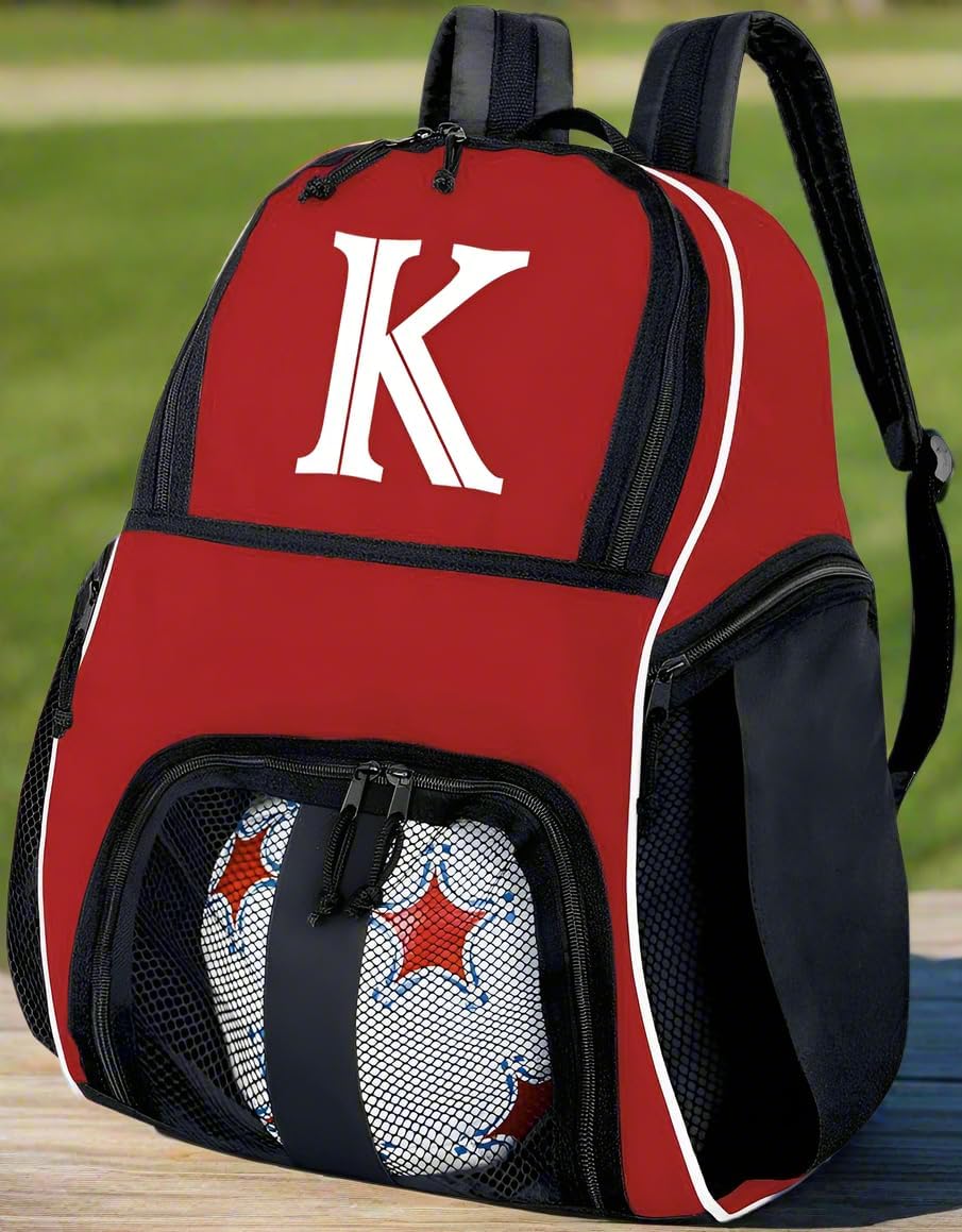 This red Broad Bay personalized soccer backpack is just right for soccer practice gear and a soccer ball. This well-made, roomy, personalized printed monogrammed soccer backpack or volleyball bag is well-made from strong 600 Denier Fabric. The mesh paneled interior ball compartment keeps your soccer ball or volleyball separate from the main compartment. The main section of this customized soccer bag measures approximately 10in x 13in x 9in after the ball is inside, and it still has plenty of room for your shin guards, cleats, and a change of clothes. Two zippered side pockets are great for your water bottle, keys and accessories. This top quality Broad Bay personalized soccer backpack or custom volleyball bag features adjustable padded shoulder straps, a top handle and dual zipper pulls on both the main compartment and the ball compartment. The base is 16in x 8in not including pockets. Find your bag fast with this unique personalized soccer backpack or personalized volleyball bag. A top personalized soccer gift idea.