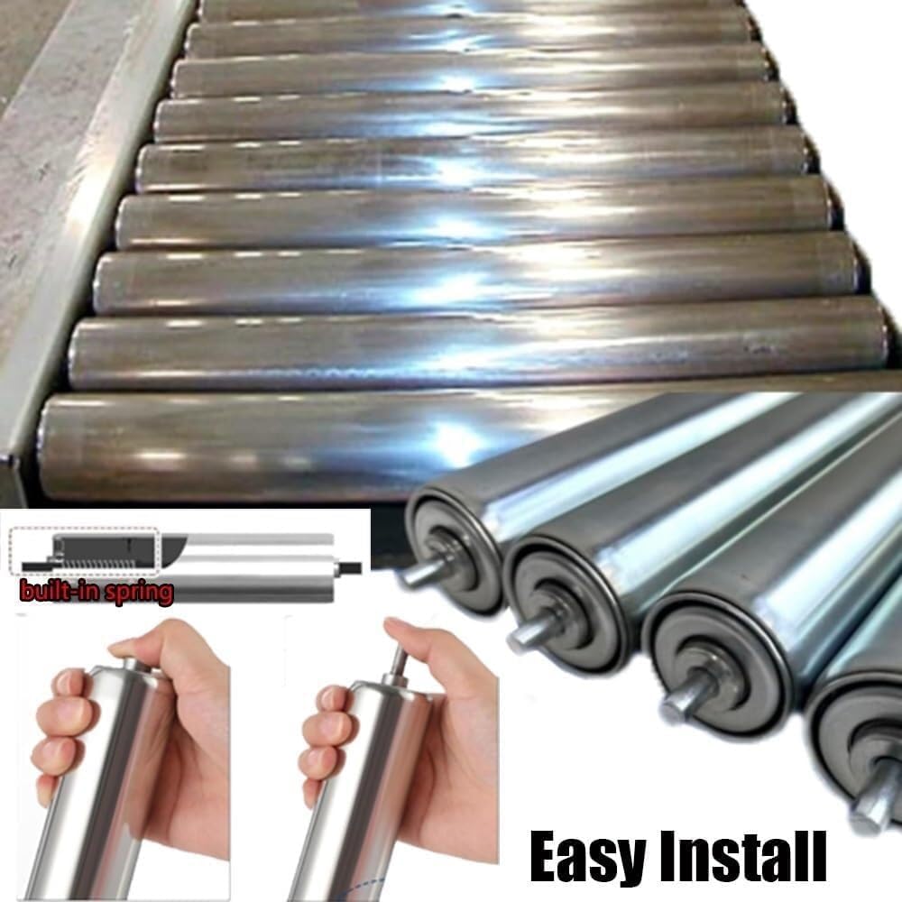 Versatility extends to woodworking roller racks saw racks material rack rollers boat rollers dock rollers loading and unloading rollers sports bike tire rollers rollers for conveyor belt rolls or conveyor replacement rollers. Specification: Roller material: stainless steel Color: Silver Size: Roller diameter 25mm (1.0 in) - shaft diameter: 8mm (3/10 inch); Packing: 5× rollers (other items shown in the picture are not included) Function: Stainless steel coils waterproof Built-in bearings spring press mounting Smooth rolling calm running and a quiet working environment Non-powered operation saves money and is preferred for efficiency and reliability Typically used in conveyor belts warehouses and production facilities for transporting goods Note: Color differences may occur due to differences in lighting conditions and an individual's understanding of color The size is measured by hand there will be a difference of 1-3cm please refer to the actual product.