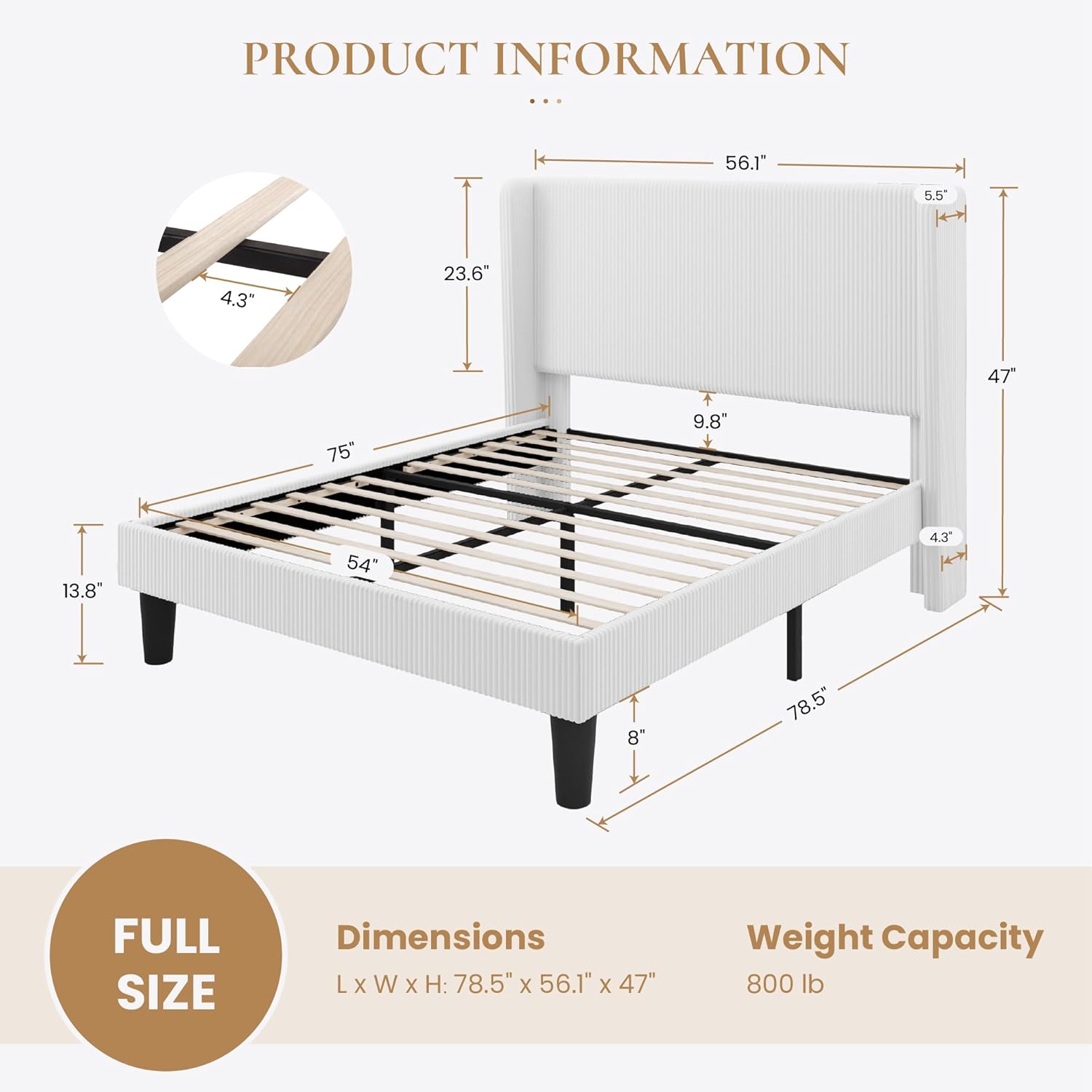 | Included Components | Assembly Hardware Kit, Bed Frame Structure, User Installation Guide, Wingback Headboard Panel, Wooden Support Slats |