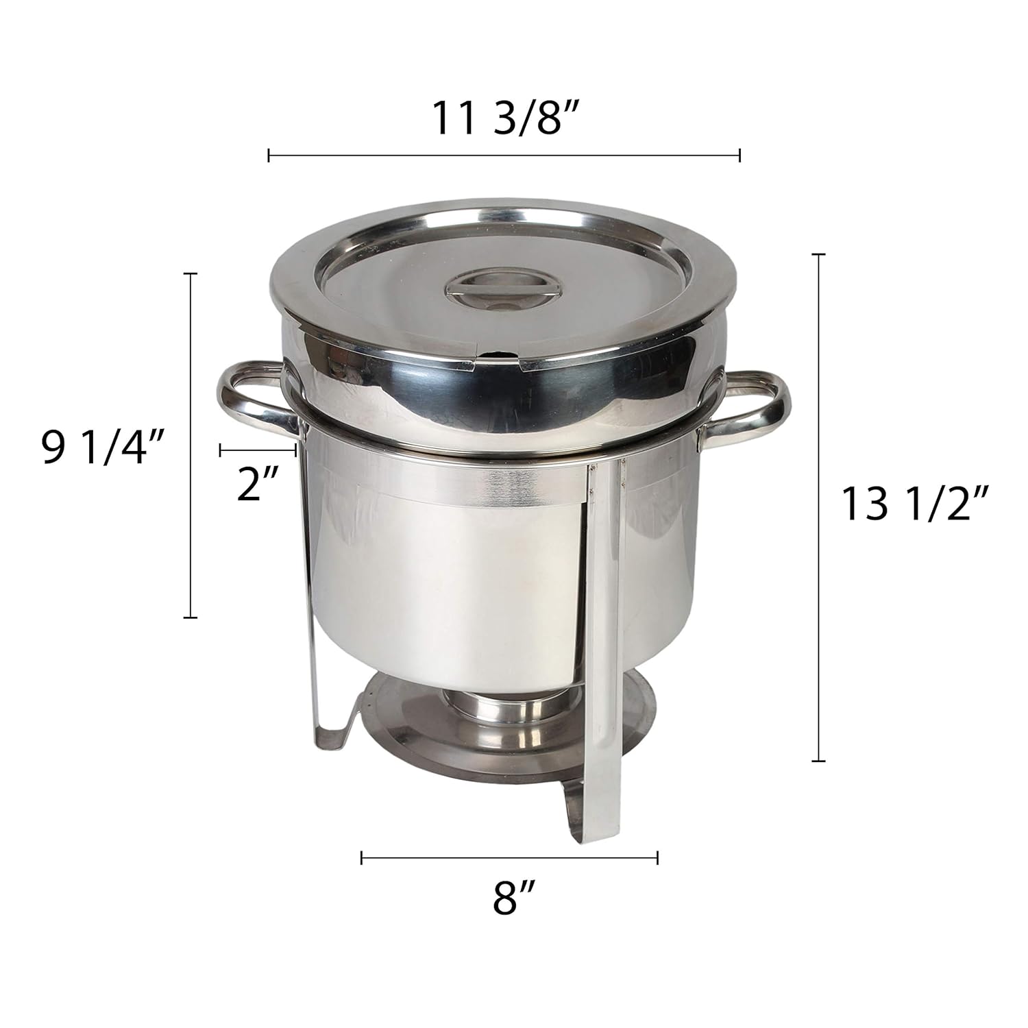 Marmite Chafer, 11 quart, 14-1/2" x 11-1/8" x 13-1/4"H, round, welded frame, lift-off lid, water pan, fuel holder, stainless steel, mirror-finish